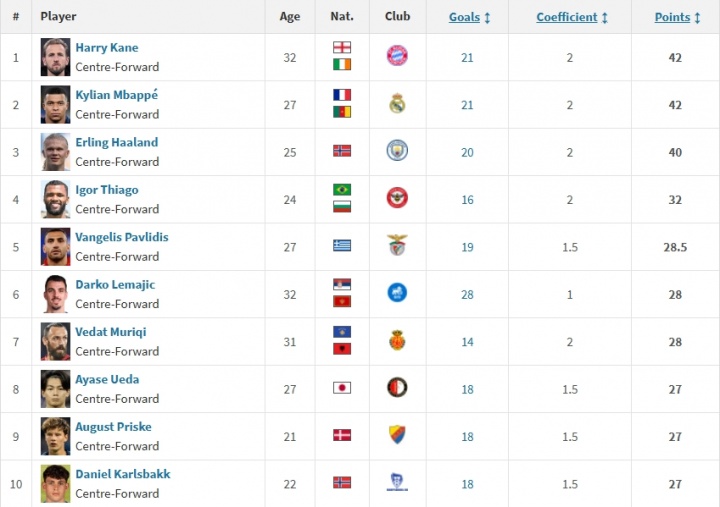 开云体育官网-欧洲金靴排名:姆巴佩本轮双响追平头名凯恩,哈兰德一球之差紧咬